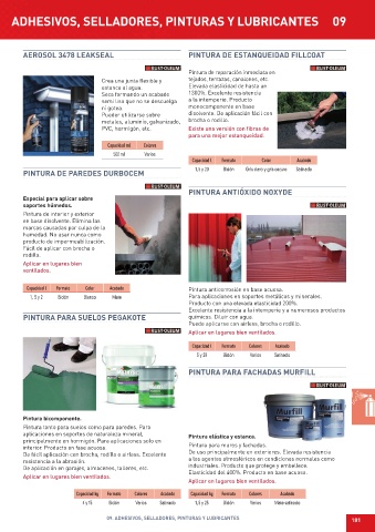 CATÁLOGO GENERAL | EDICIÓN 2016 09. ADHESIVOS, SELLADORES, PINTURAS Y LUBRICANTES 181