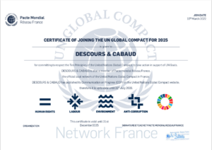 Nuestro grupo Descours & Cabaud, forma parte del Pacto Mundial de Naciones Unidas, y mantiene actualizada su Comunicación sobre el Progreso en la plataforma oficial de Naciones Unidas, válida hasta el 31 de julio de 2026.